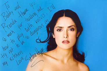 I was flown to L.A. to train Miss Hayek for the role of a bank robber who happens to be an expert with knives.